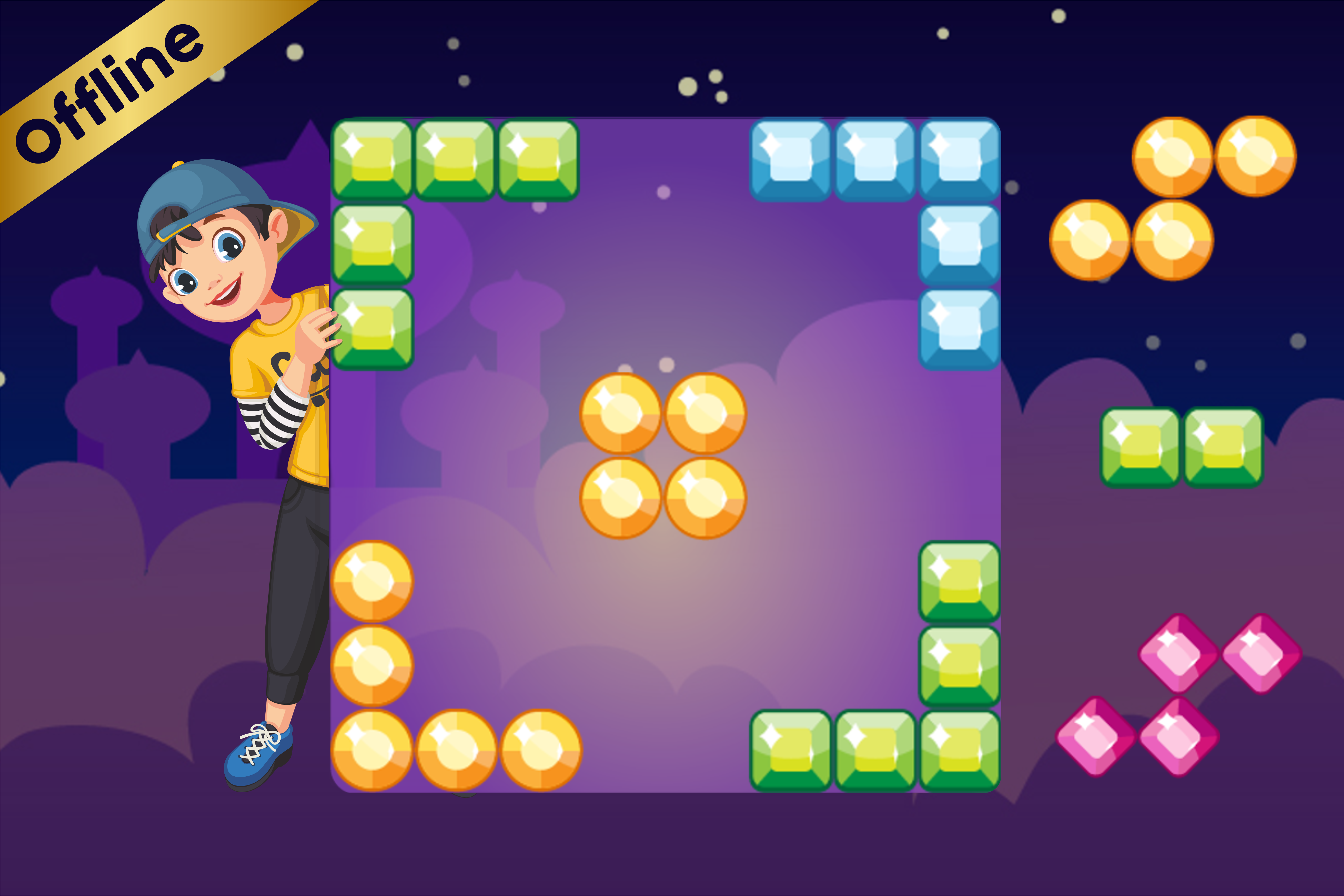 - Fill the puzzle box vertically or horizontally and make a jewel blockpuz blitz.