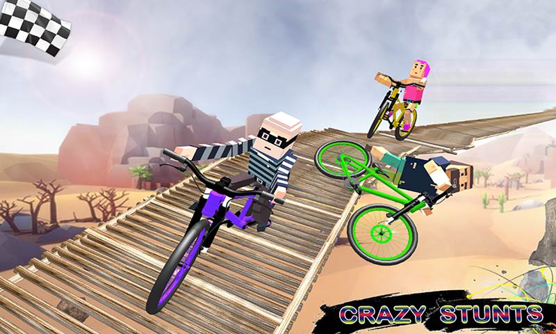 Welcome to the world of Blocky Kids BMX Cycle Racing Game where Exciting and exceptional missions are waiting for you to play with. Choose your heart-throb super Blocky Kids. In the start of the game you only can start with have to perform difficult stunts on stunning tracks with your amazing super Blockies and sports Blocky Bicycle stager. Hit more to the balls, cones, boxes to get more and more score in this color sport competition racing games & you will need to win the Race as well. Beware from tumbling into the water otherwise you will lose the mission. So get onto your Blocky sports Cycle and take control of steering and don’t lose your balance while racing on these motor trend Off-road tracks and accomplishment these deadly stunts. Moreover you must reach mandatory score in the mission than you have to move towards your finishing permainan sepeda point or else you will lose the game stager. 3D graphics and stunt arena made this game to the best Blocky Kids BMX Cycle Racing Game of the 2018.