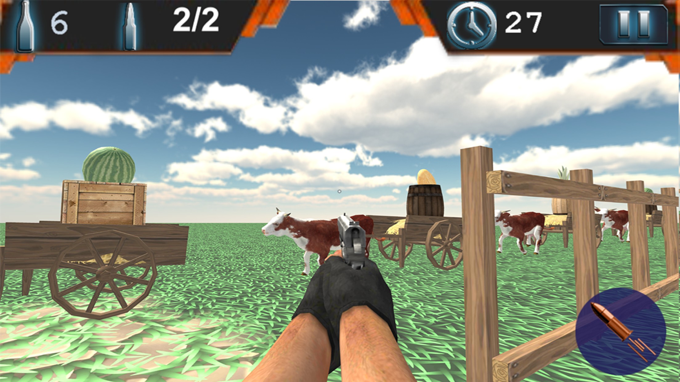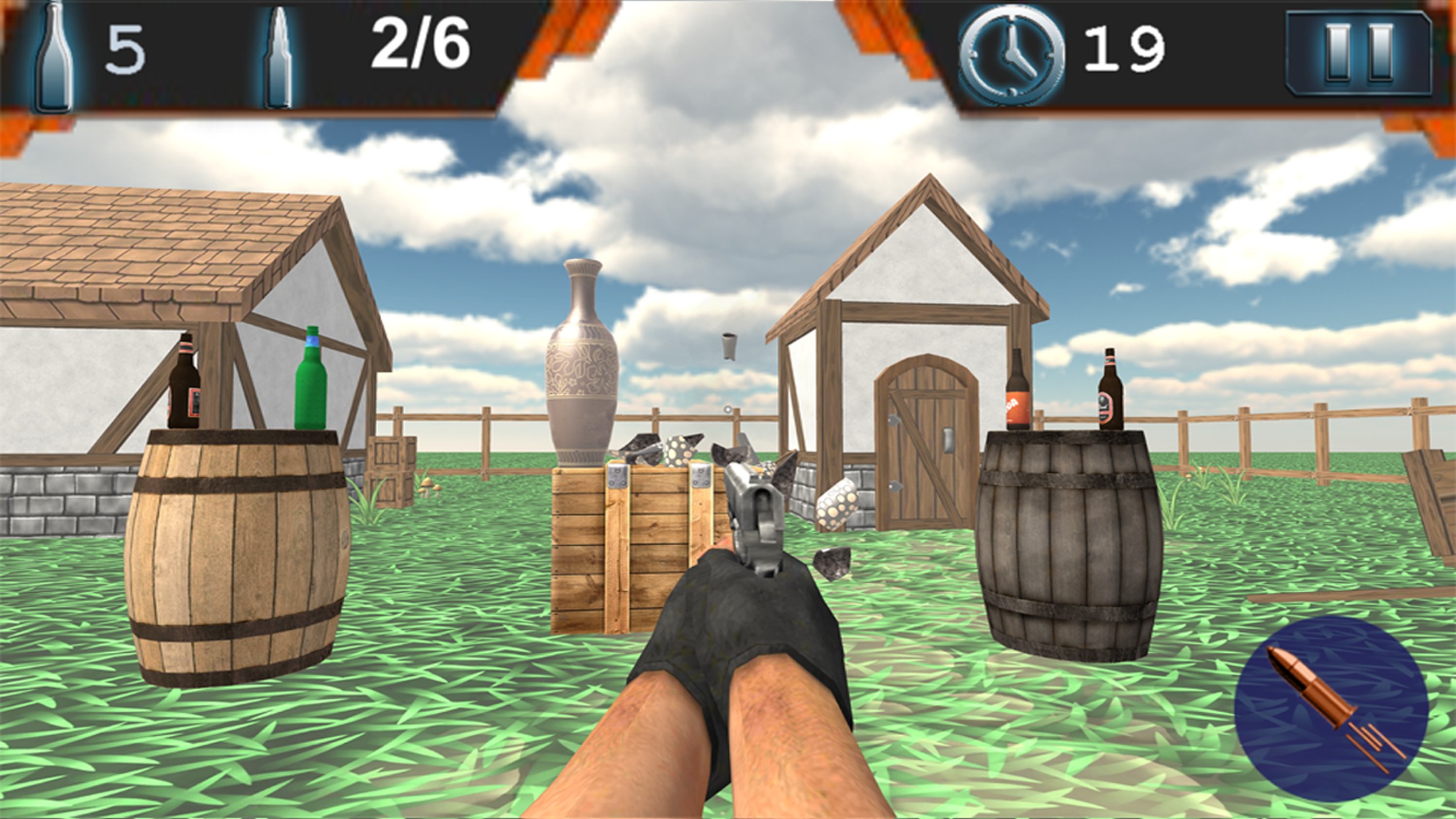 Bottle smashing is about shooting as many bottles as you can in the fixed time clock. Only if you can do both will you become a real hit man Bottle Hunter! Every round is harder, than the last. There are some expertise to practice, you can break the bottle without obstacle such as bombs and shells.