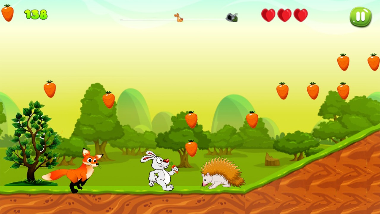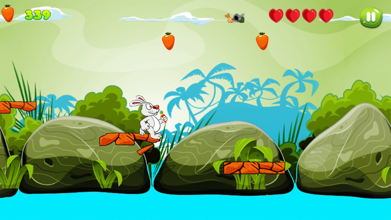 Jump and run into jungle to find the fox, but so many animals are there to attack out little bunny. Run and jump all the enemies and take as much as carrots you can.