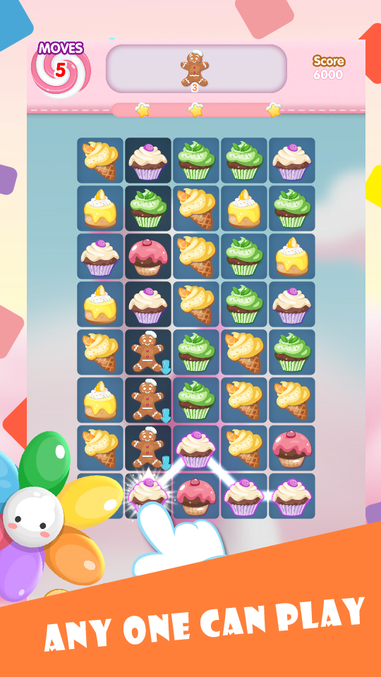 Connect the cakes in group of 3 or more to collect.