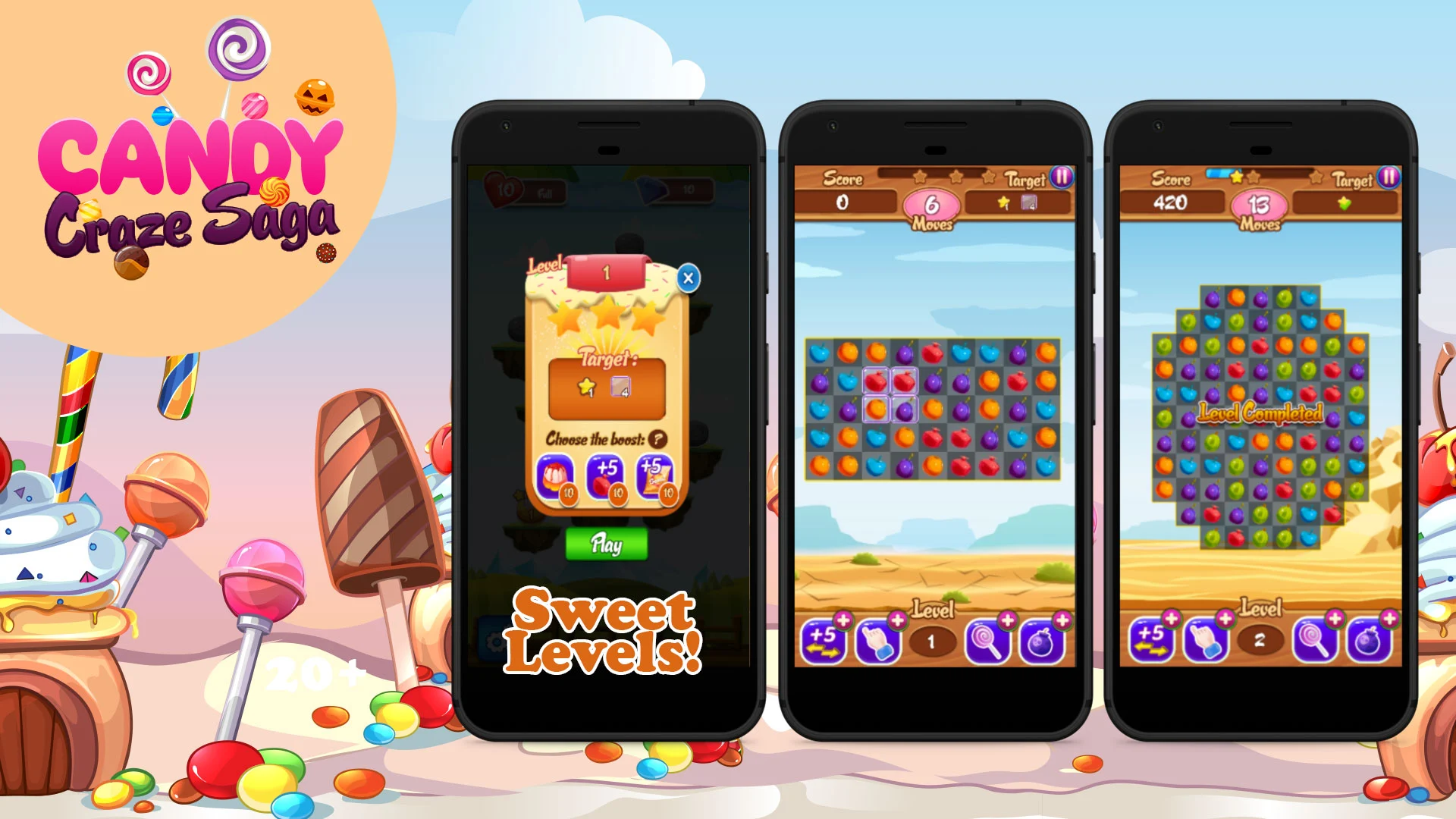 Step into the world of Candy Craze Saga, the ultimate match-3 puzzle game! Enjoy endless fun as you match, pop, and blast candies in this exciting puzzle adventure. Featuring 10 thrilling levels with more on the way, it's a sweet escape for puzzle lovers everywhere.