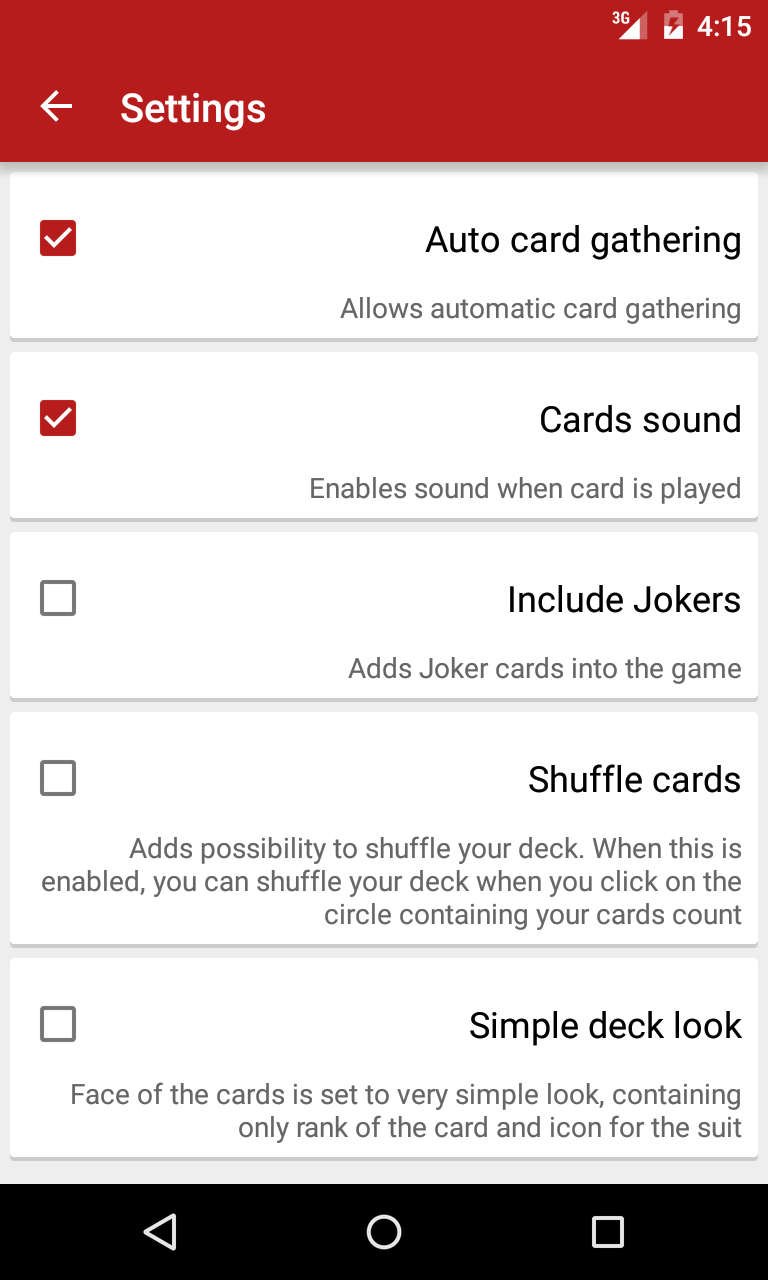 This is very old card game, originally called "War". In this Cards Battle you can play vs AI or vs your friend via in-game HotSeat mode. You can read rules of the game, in game help, or over the internet.
