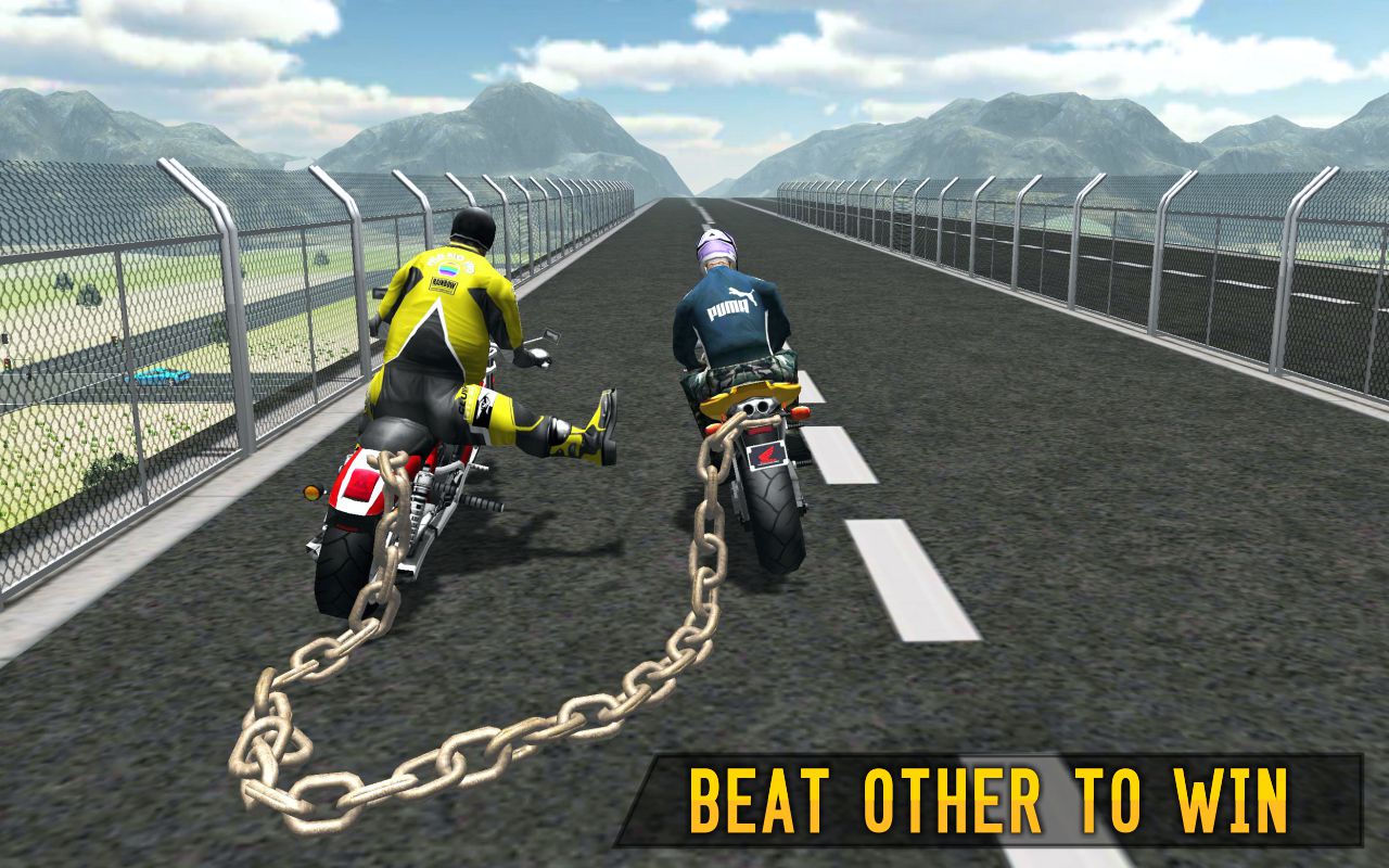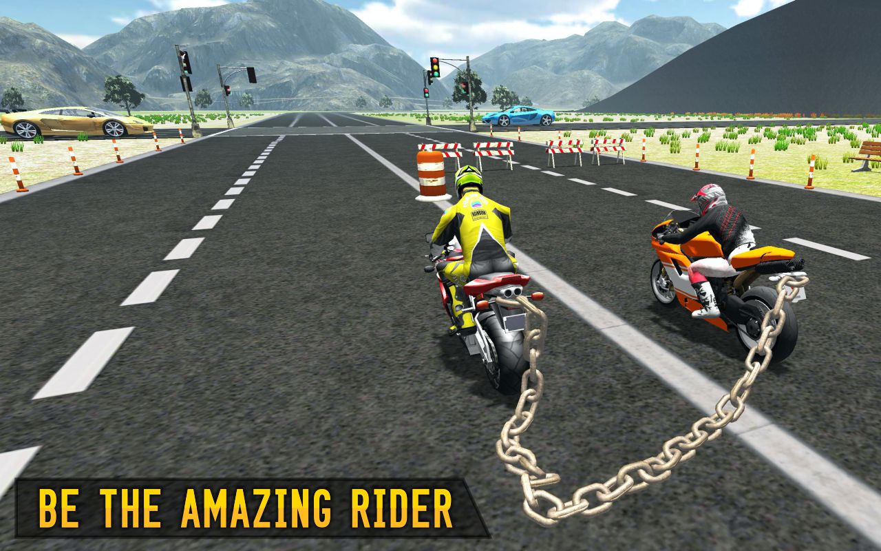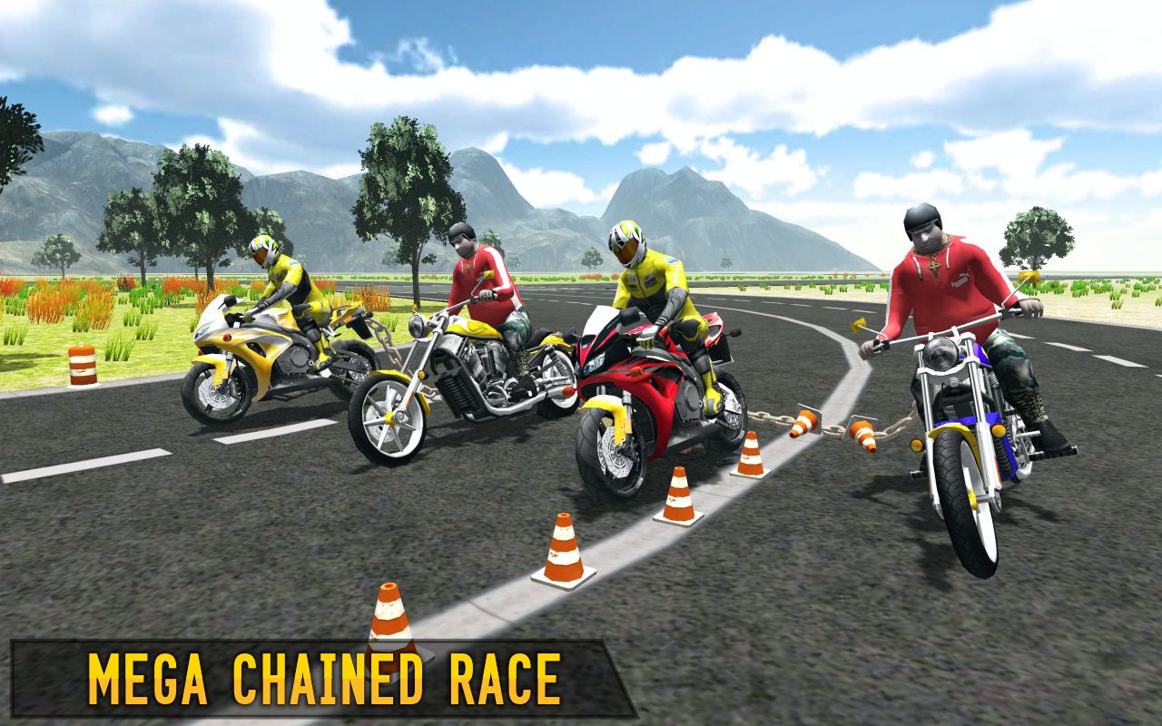 Are you ready for one of the most fascinating and satisfying bike chain break driving experience in the world? If yes then download this Moto bike chain driving 3D game in the stadium. Let me break the biggest secret about this Moto bike traffic extreme racer 3D game and that is this tricky motorbike stunt rival racing game is just not Moto real bike driving game simulator game but also a car racing, Prado jeep racing, and tuk-tuk rickshaw racing. With its advanced features now, you can select between different cars racer bikes and multiple monsters extreme full bike racing vehicles. This impossible crazy bike stunt challenge game is a milestone in the category of the different model of the real highway motorcycle driver. Race through highway with enemies, avoid any traffic incident for a long time and get an opportunity to become a drive motorcycle crazy off-road rider. You are a speed rider and going to rock this Xtreme turbo bike racing free 3D on your high-speed car and on your fast speed bike. Smooth and realistic control handling make this asphalt city bike nitro racing fun ride game a furious motorbike dangerous stunt 2017 game with realistic ultimate bike desert rally simulator and driving physics. If you drive through the highway with high speed on your speed bike with enemies or on your speed car then you can become a first-person racer of this highway in Moto bike real attack racing adventure.