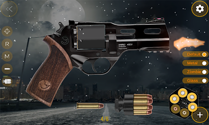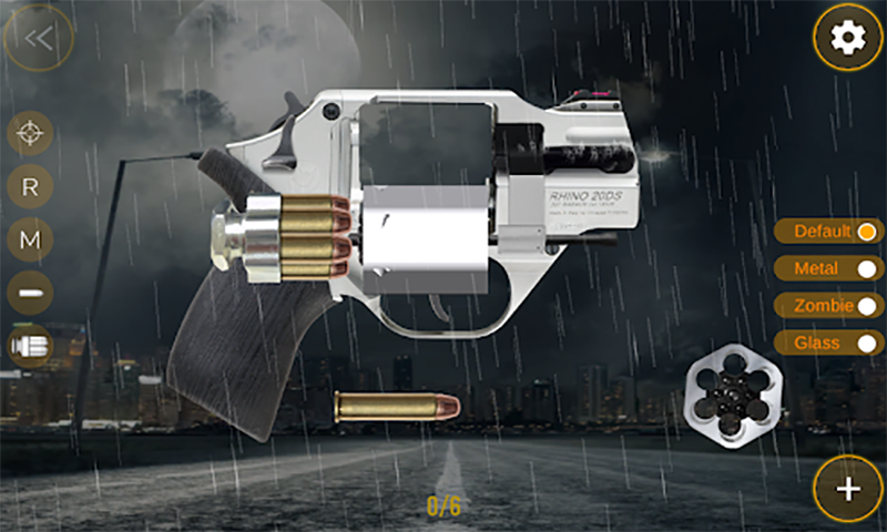 Chiappa Rhino Revolver Sim app is a weapon game that will bring you a lot of fun and we are sure that you will never be bored again with this revolver simulator. This simulator game also gives you the possibility to learn something more about Chiappa Rhino revolvers. You have an option which enables you to see more details about their guns and takes you to the official website of Chiappa Rhino revolvers where you can read everything you need to know about a certain revolver.