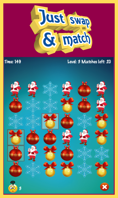 Reach number of matches for passing level. This is a fun puzzle game for all ages.