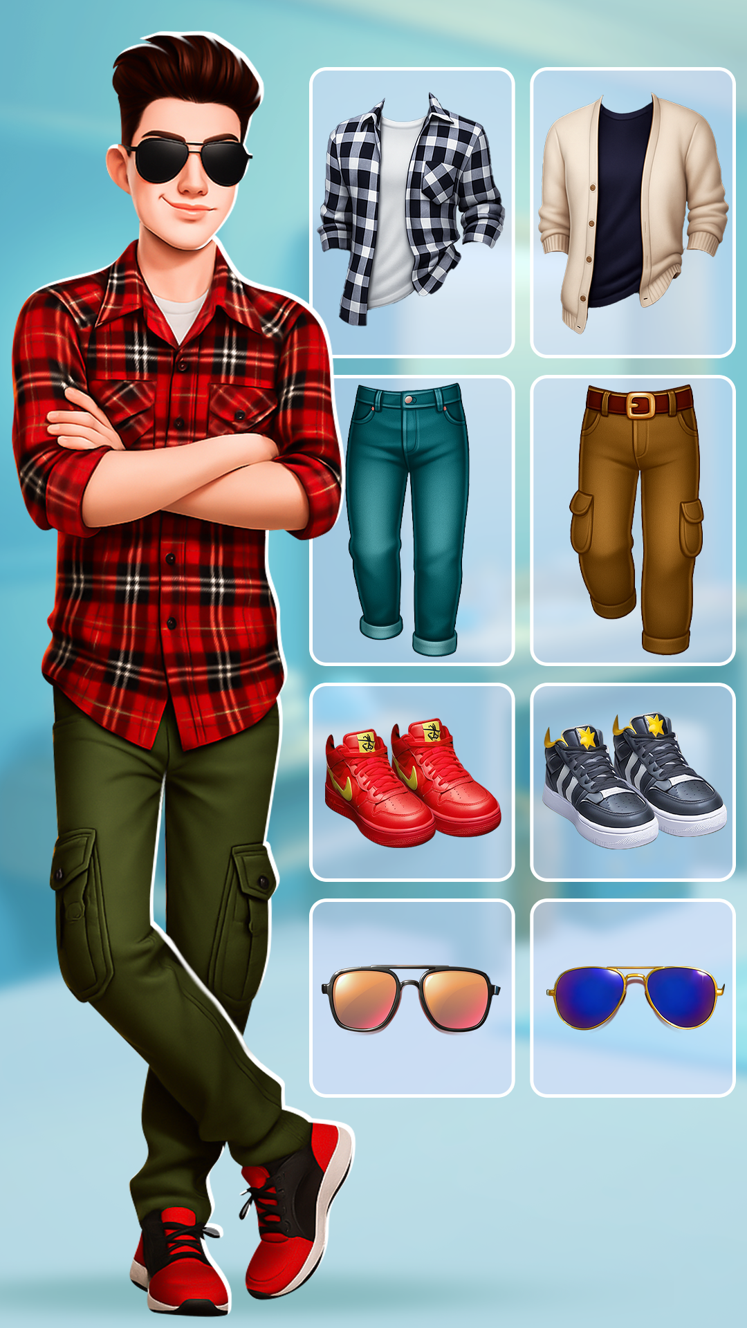 John wants to look cool on the love date, so let's him in this salon game to choose an outfit, funky T-shirt, sunglasses, nice hair style, jeans, footwear and much more. Hurry John don't want to be late for the dinner date.