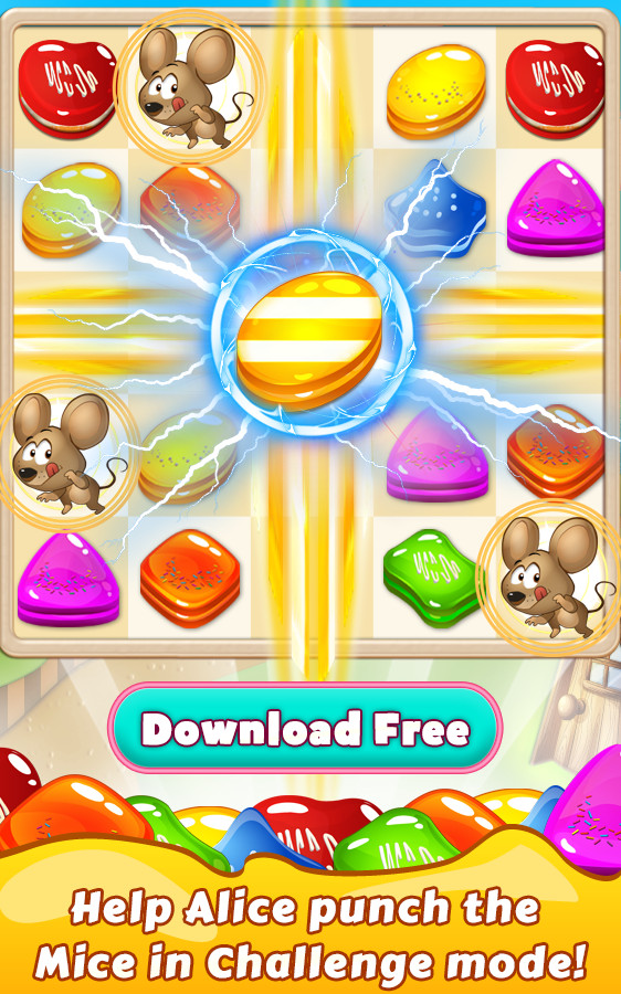 Challenge: the mouse eats biscuits on the sugar puzzle. Go with Alice to punch the mice all!