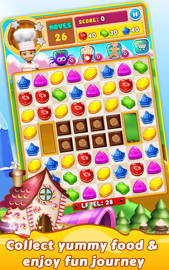 ✔ Collect delicious food contain contain direct boosters like extra time, double score...