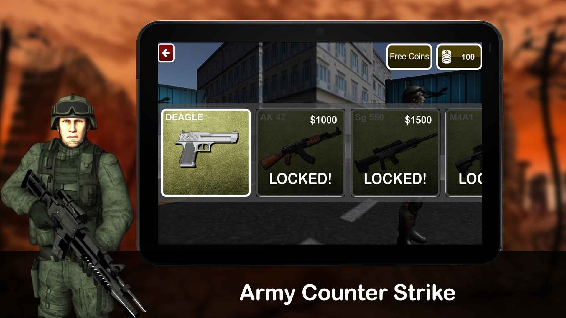 As an army commando, you need to defend city from enemy force and counter strike their attack. Counter Strike Sniper shooting presents awesome visuals and the missions are very entertaining. Player is able to choose from guns like <b>Dessert Eagle, AK-47, SG 550, M4 Carbine, FAMAS, Steyr AUG, Pistol</b> and <b>AWP</b>.