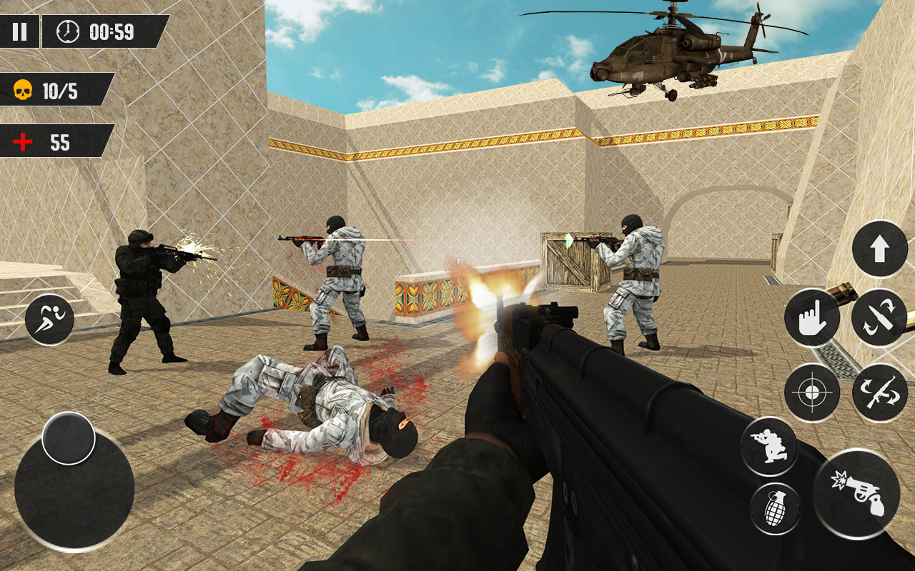 Modern FPS Shooting Games Fans, Welcome to Counter Terrorist 2017 mobile strike gun shot game, SWAT action game. The city is facing threats from some terrorist. Intelligence operation is being operated across the city to find out terrorist hideouts. CID departments reports a suspect building in the city where suspects are hiding and planning their next attacks. You are a trained head hunter SWAT Special Forces agent, your job is to kill the suspects by a counter terrorist strike right now. A highly trained sniper fury commando will accompany you during first anti-terrorist operation. A Counter Terrorist 2017 army gun shooting 3d Game is a counter terrorist strike FPS shooting game in which a commando fps shoot terrorists,it is a top free games 3D counter terrorist shooting simulation game. The game is about counter terrorist missions, counter strike on enemies to destroy enemies and kill all terrorist through counter attack with rapid shooting machine guns, hand grenades and other weapons.