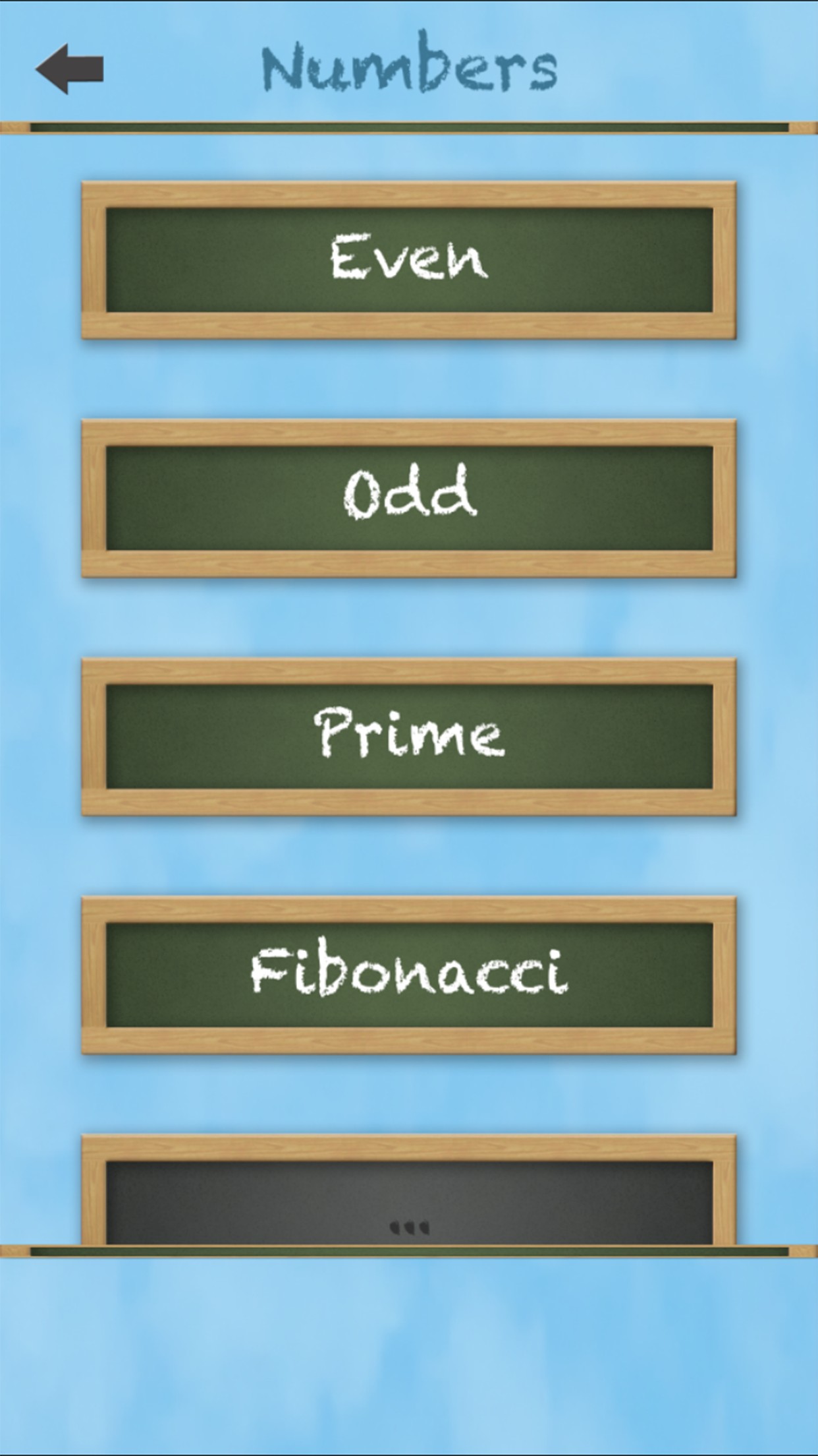 Learn the even numbers, odd numbers, prime numbers, Fibonacci numbers.