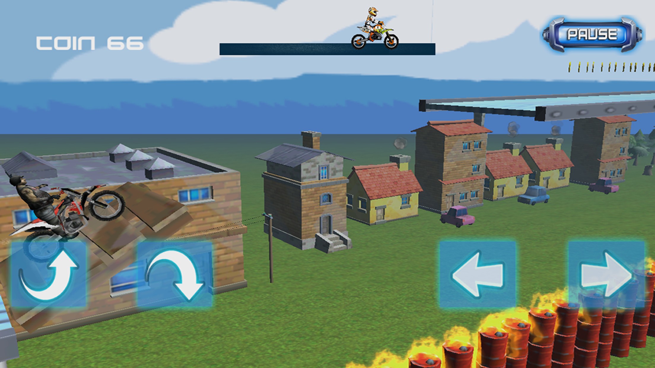 Racing on Bike Free is a fast paced, challenging game to play. Just control your phone to steer your bike to the left or right. Touch or press the gas (right) button to accelerate and the brake (left) button to slow down. The faster you drive the higher you score! Racing on Bike Free is an exciting bike stunts game that will get your adrenaline pumping!