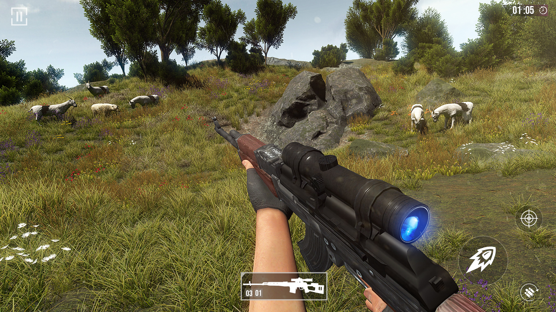 In this Deer Hunting FPS, step into the shoes of a skilled Deer Hunter offline, armed with your choice of hunting weapons, whether it be the precision of Bow Hunting or the power of Rifle Hunting. The choice is yours as you immerse yourself in a realistic hunting experience that pushes your skills to the limit in this Deer Hunting Simulator Offline. The Deer hunting FPS game's advanced mechanics and intuitive controls ensure that you feel every pulse-pounding moment of the hunt 2023.