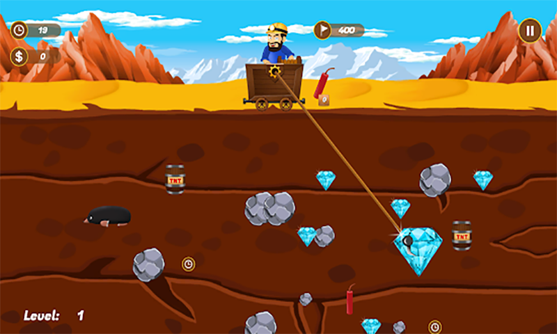 Diamonds, gold and dynamite? Sounds great, right? So wait no more. Feel some gold rush experience. Go get them. Your claw will swing forward and backward. Tap screen to lower it. When it catches something it will reel it up. You will have a chance to dig some great diamonds and gold. Heavy rocks and big diamonds will be harder to reel up. Between levels you have a chance to get some rewards that can help you digging for gold and diamonds.