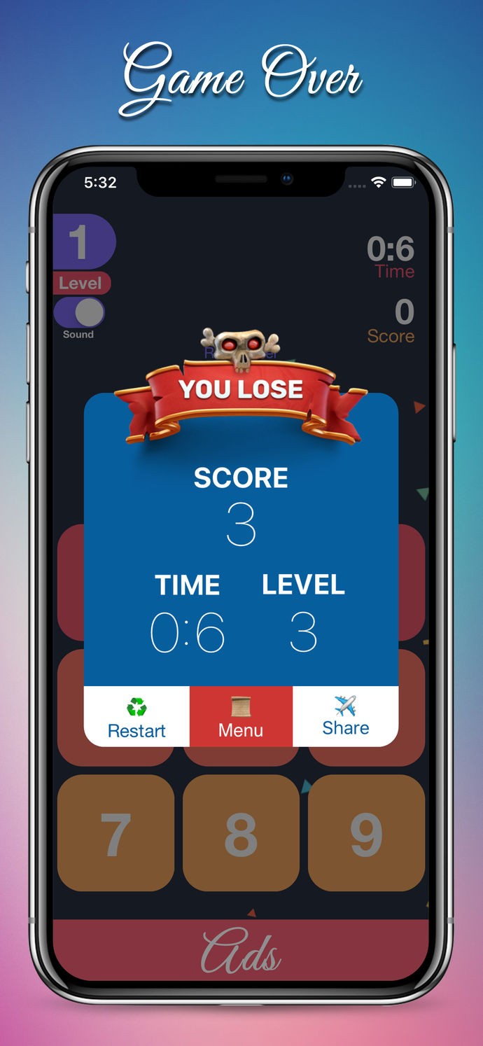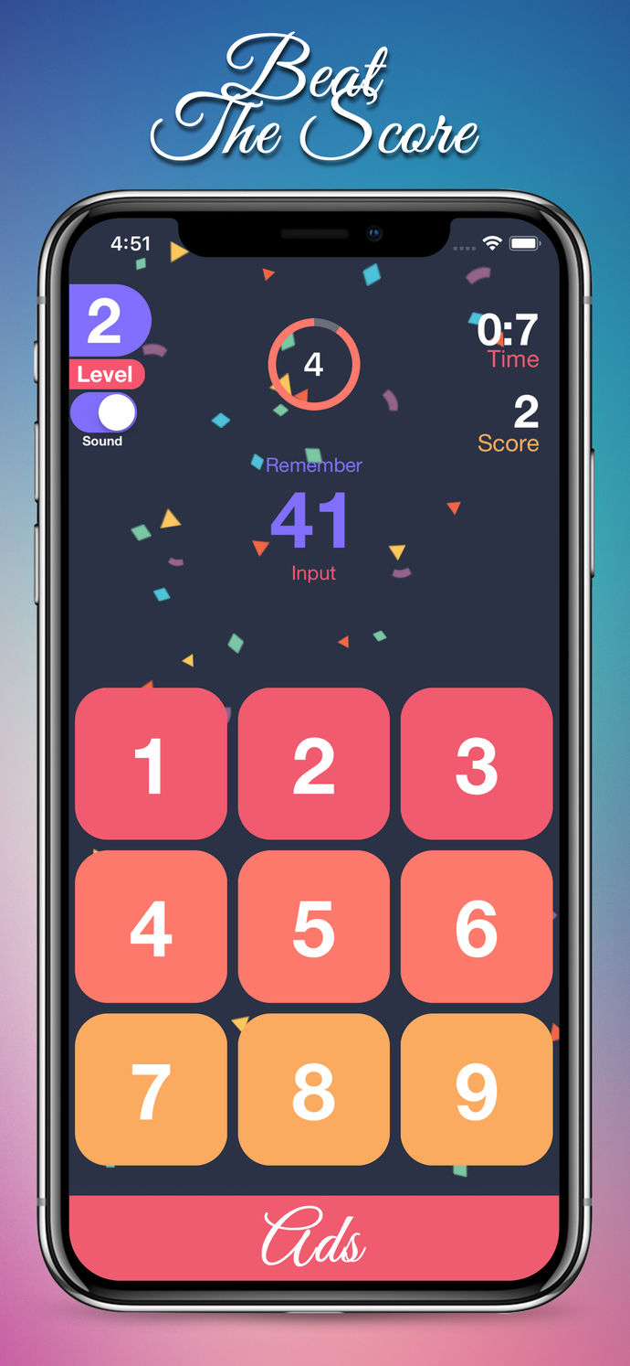 You have four(4) seconds to remember a numbered sequence. When ready, tap the number in the correct order to complete a round. The difficulty will increase as the level progress.