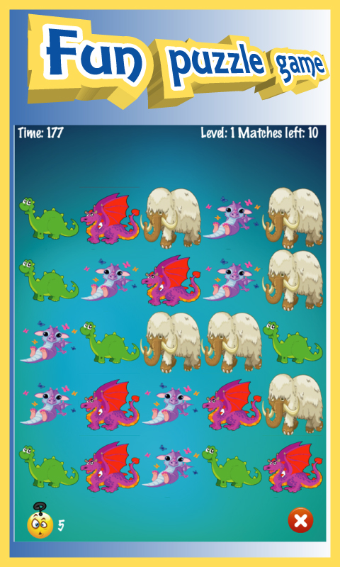 Dino Matching game is one of the most addictive matching games you will ever play, a thrilling and amazing dinosaurs experience for all match 3 puzzle fans! Match at least 3 of the same dinosaurs and reach number of matches for passing level..