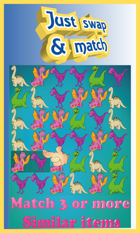 Get your fingers ready and play for FREE the best delicious match-3 puzzle game. Swap and match dinosaurs. Unlock more than 450 amazing levels.
