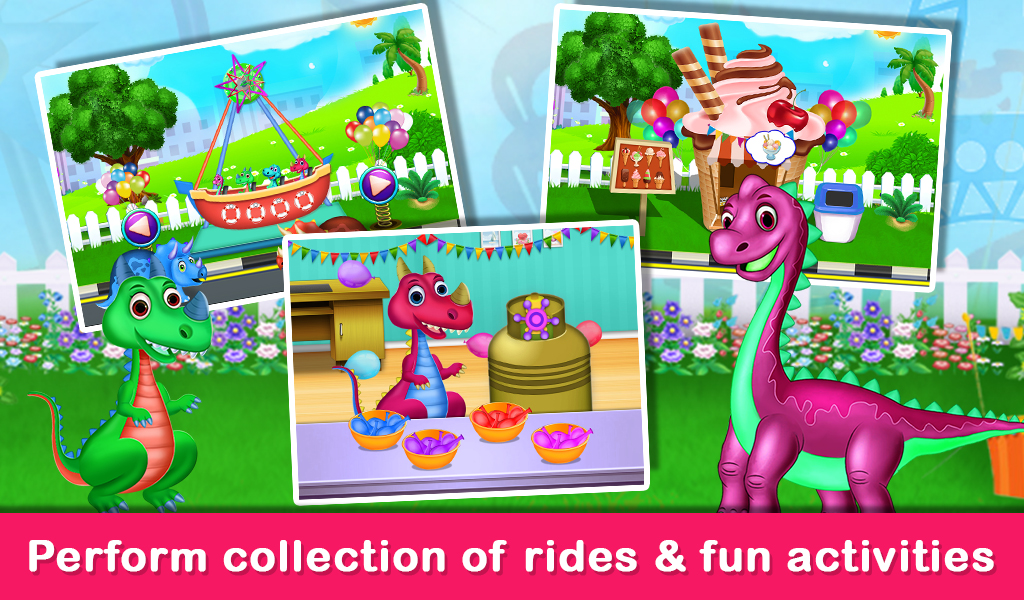 Dinosaur World has so many interesting rides which will make your kids giggle and laugh with cute little dinosaurs. There are different rides like Dragon Swing, The Horse Ride, The Saucer Ride, Merry Go Round, Travel into the dragon train and many more. Dinosaurs love this kind of ride so you need to enjoy these rides with them. This dinosaur game also includes numerous shops like Puffy Popcorn shop, Lollipop Shop and Ice Cream shop. Dinosaurs are just everywhere. Educational stuff like joining the pieces of dinosaurs and finding the leftovers of dinosaur from the soil will engage you with a great enjoyment. Overall, this jurassic world game is complete entertainment for your kids.