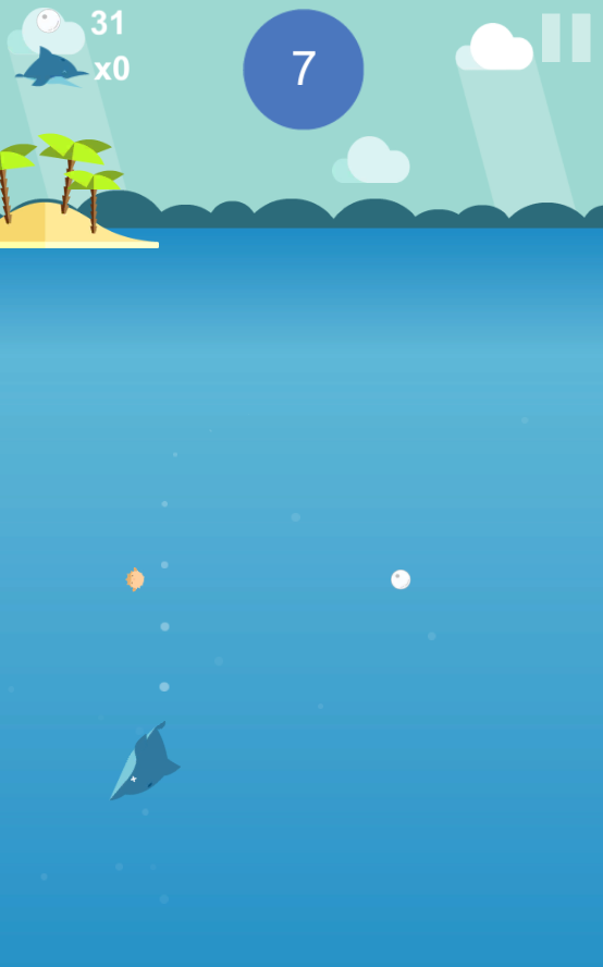 Wait for the right moment and when the water is clear, hold the screen to form a circle. The longer you hold, the bigger the circle will dolphin swim. Releasing the screen, you kick off dolphin for pearl. Good luck and watch out for the puffer fish!