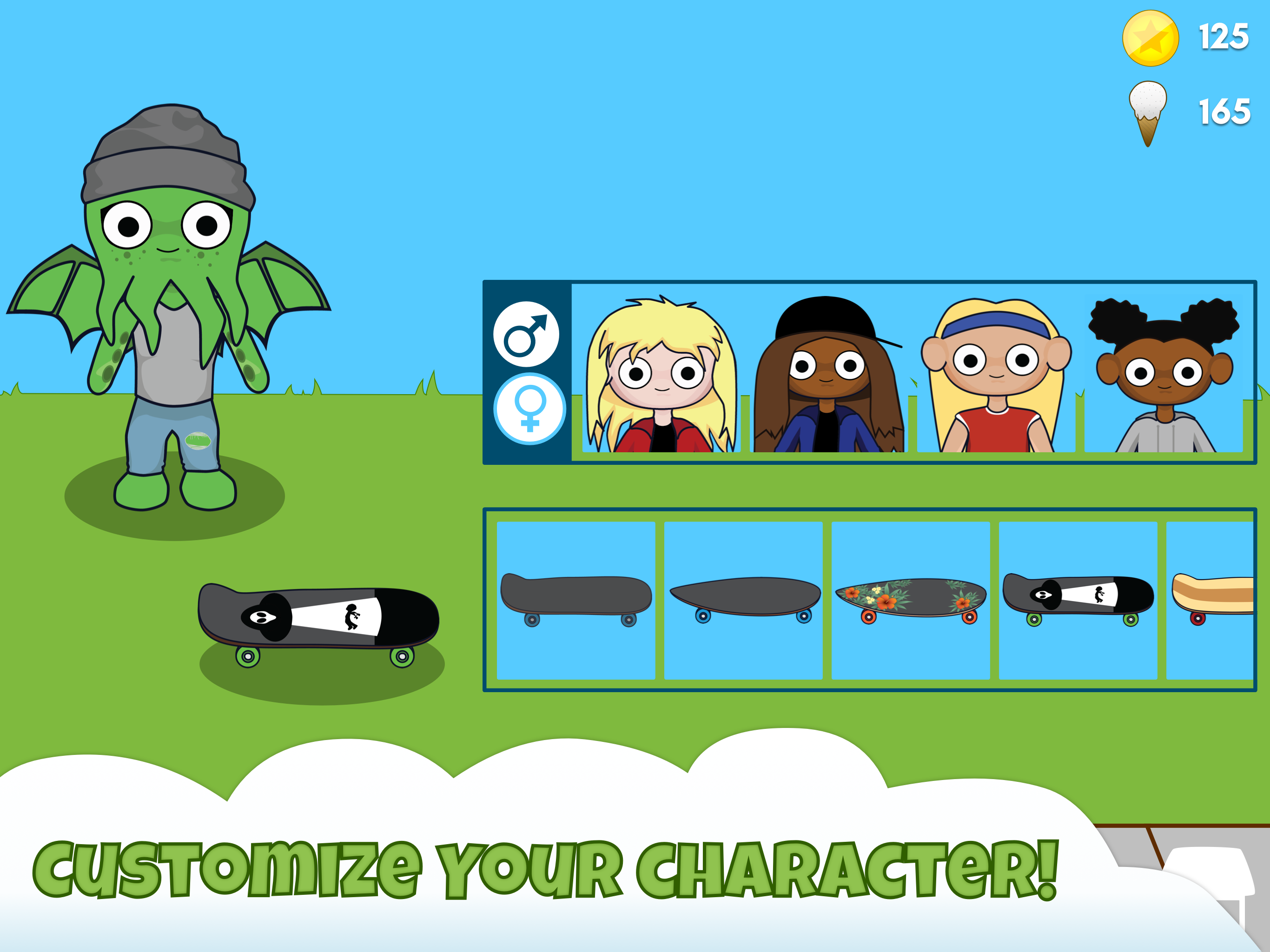 -Customize your character and skateboard