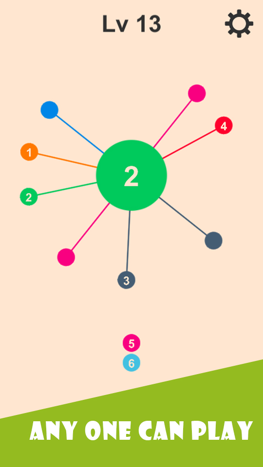 Players need to launch radiant ball to the rotation dots one by one, but must not touch others.