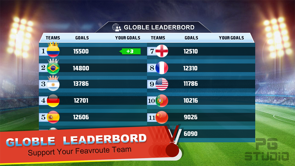 Compete or play with your friends from real time multiplayer. Support your favorite country and bring them on the Top