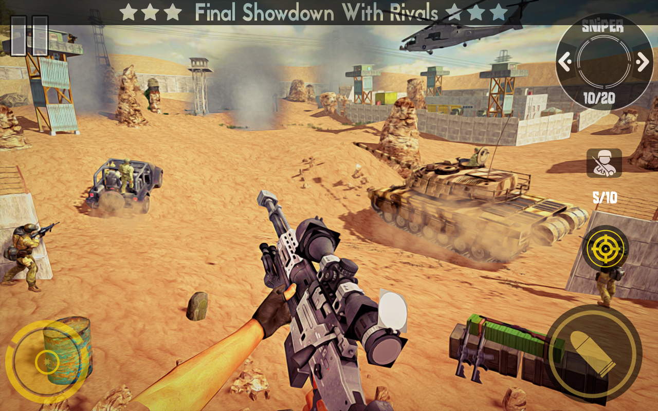 In this Modern Sniper Shooting Gun Game use your special army force commando skills and win commando shooting award 2019 and win the war.
