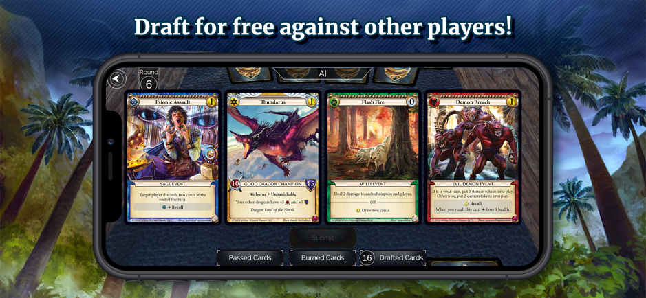 Epic Card Game is a strategy card game, where you summon champions and use events to try and defeat your opponent. There are many ways to play Epic – a different game every time you play! Supported in the app are Sealed, Dark Draft, Preconstructed, and Full Constructed. There is also Campaign mode, where you try to defeat as many opponents as possible, all while building a better and better deck of cards as you progress through the Epic landscape. For more formats, check out the physical game that the app was based on.