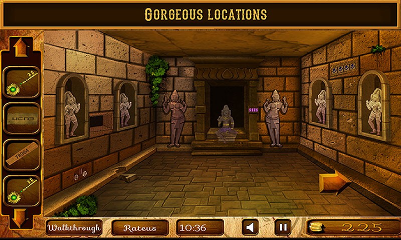 The story of this game is about a mysterious archaeological place, where no one has returned back. The heroine of this game plays the archaeologist role, who is a bold and talented girl. She is interested in untying the knots of that archaeological place. Unfortunately, she too finds out the way back. She had a lover, who now wants to find her. Add a player, you will be playing the role of her lover in rescuing her. These free escape games are completely filled with magical fantasies, adventures, mysteries of Demons and Gods along with riddling puzzles. These mysterious games will make you the real feel as if you are inside the mysterious world and trying to escape from it. These 'Point And Click Type New Escape Games' are developed and released by Hidden Fun Games(HFG).