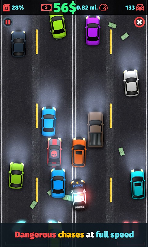 ★ Great variety of enemies and vehicles that you will have to chase or dodge.