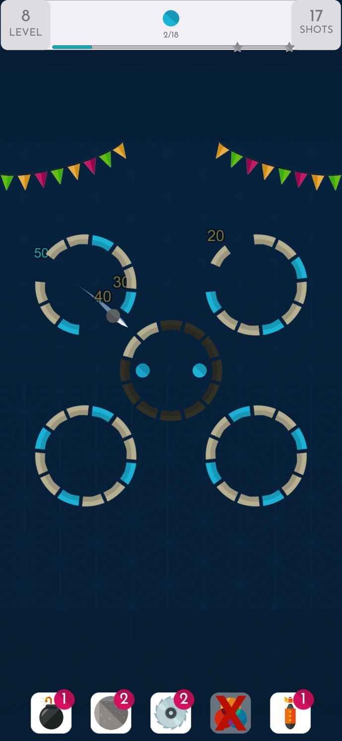 • A bomb can be detonated by any of the bricks and balls to make them blast off. Be sure to aim and double-click the bomb which pegs and balls you want blown up.