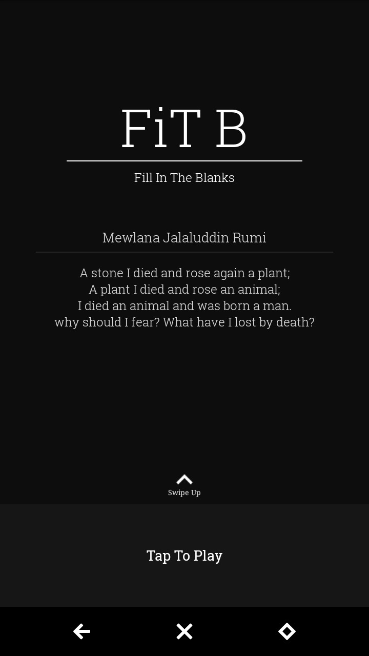 Immerse yourself in a and beautifully, clean and minimally designed game focused on Exquisite Short Stories and Poetry. Fill In The Blanks - "FiT B" houses a collection of some of the best short stories and Poetry written throughout the centuries.