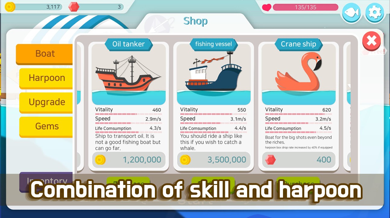 - Find out your unique voyage method to race to the end of the ocean, by using well-combined spear attributes and fish skills.
