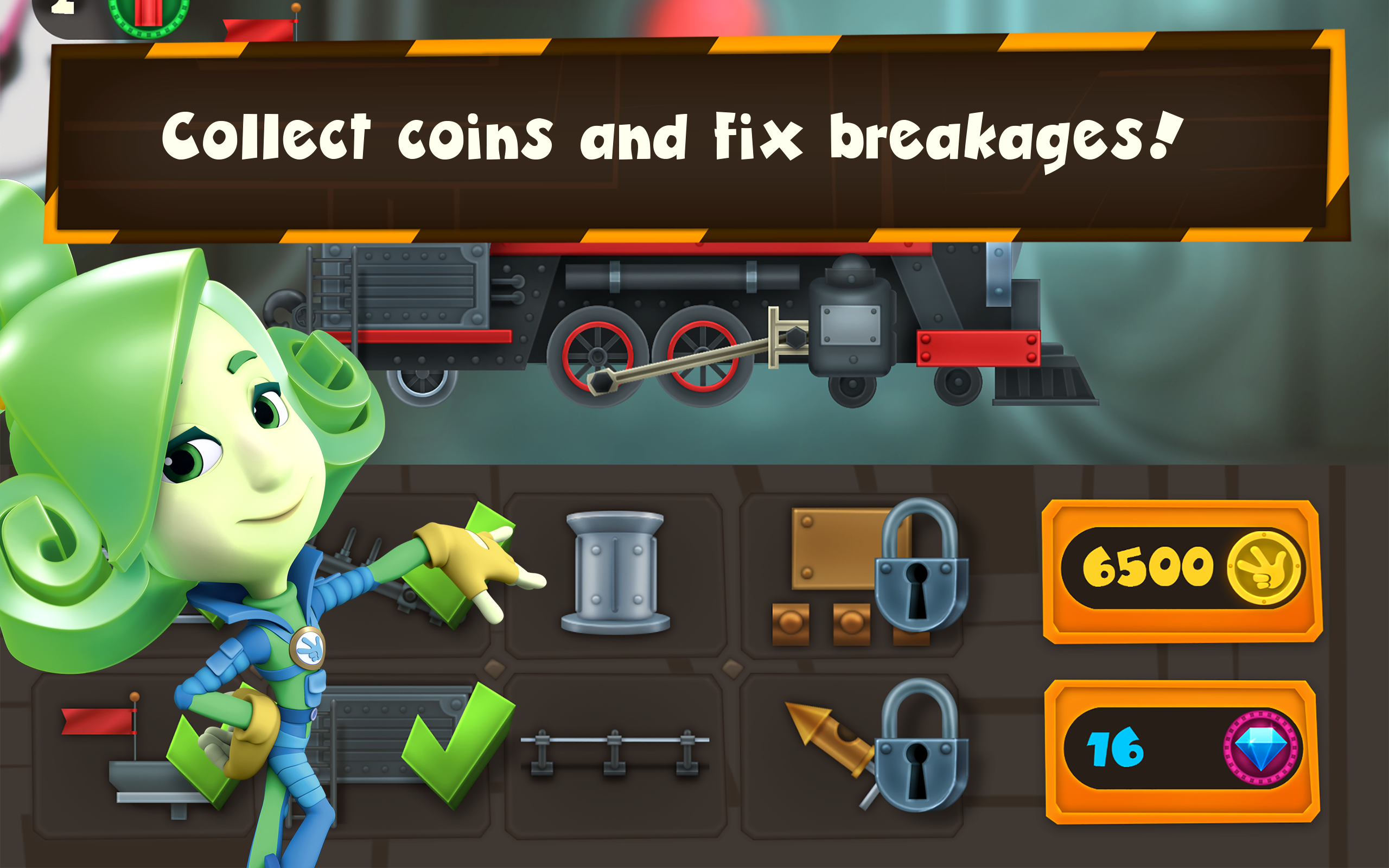 Flying will pay off - you’ll be able to fix the train with the collected coins and diamonds.