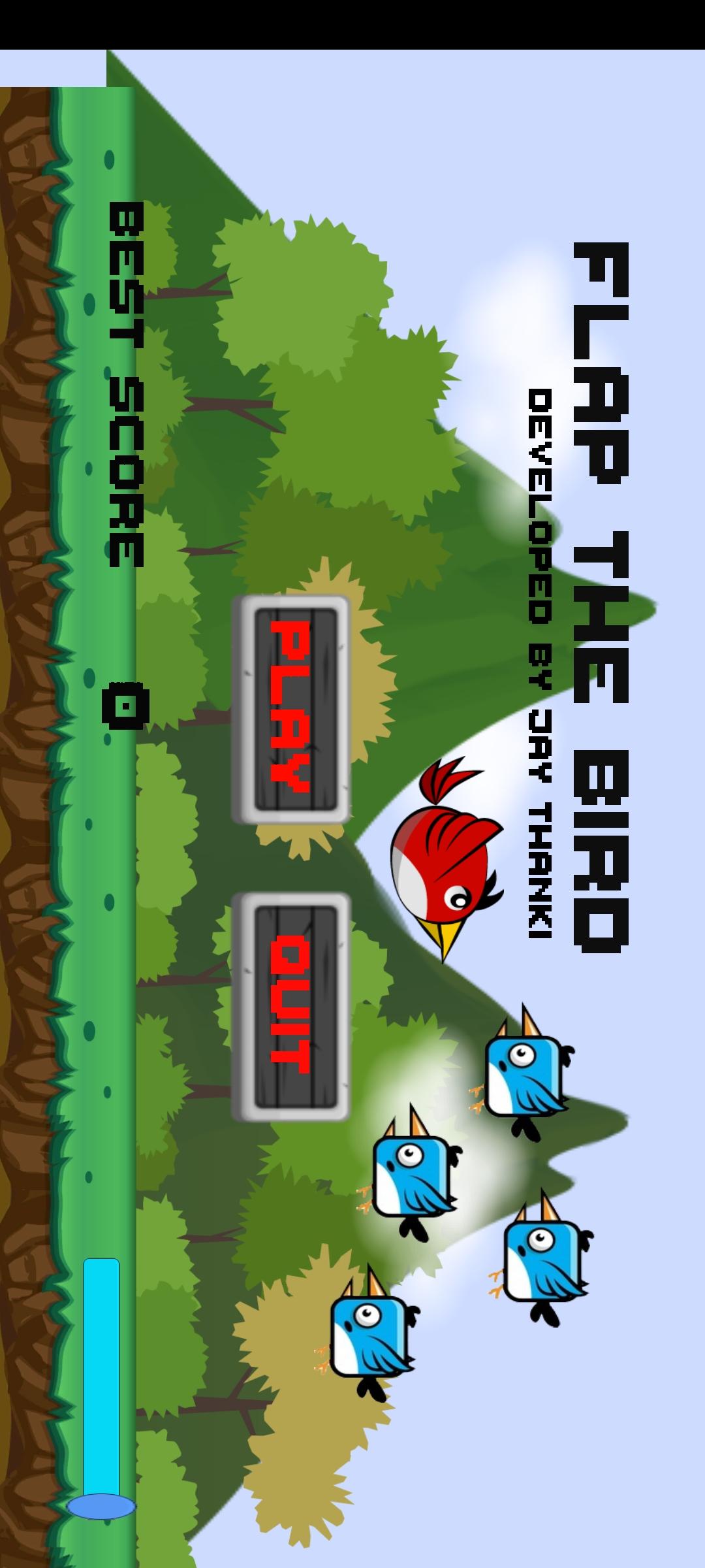 Flap the Bird is a 2D Mobile game which is developed and Design by Jay Thanki. The game is a side-scroller where the Player controls a bird, attempting to fly between columns of Red Bird and the Grass of land.