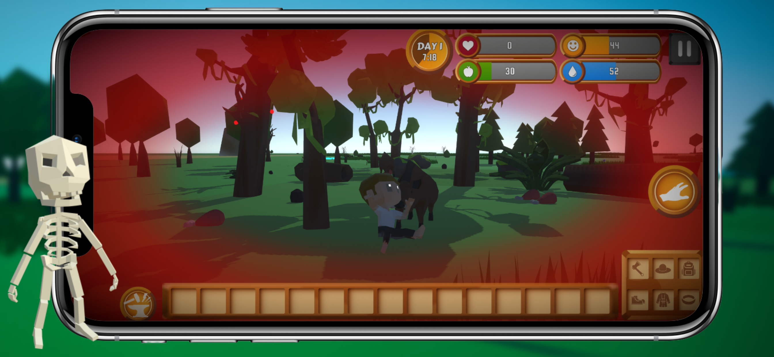 We know that in the forest there is much to burn and it is very dangerous to make fire, so you have to craft a fire, where you can also cook, always remember to cook the meat of the animals you hunt, if you do not cook the meat you may lose life and not survive. The animals also live in their life arc and survive on their own, so you can find materials and meat on the ground, if you have recently killed one nearby.