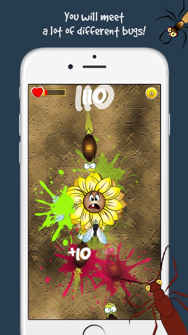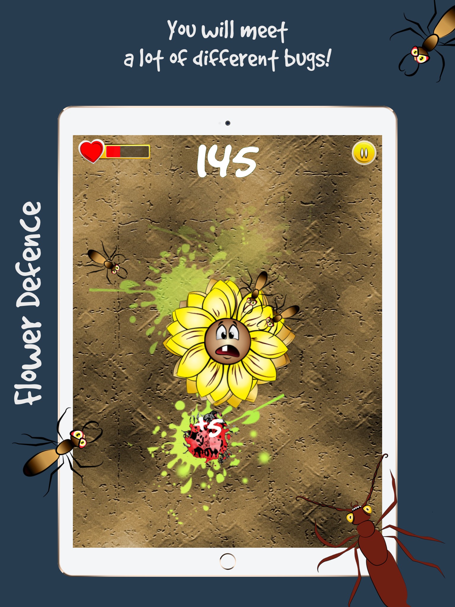 Each bug moves in a different speed, has a different shield and will eat the flower at different speeds.
