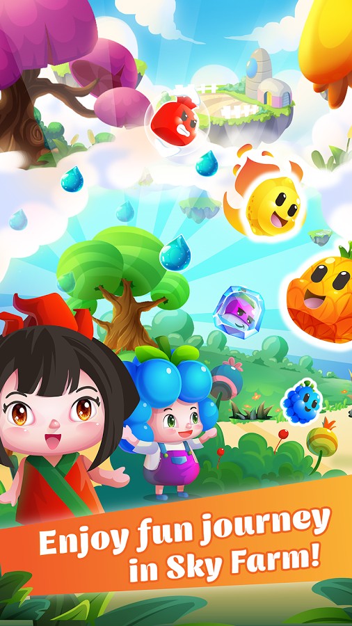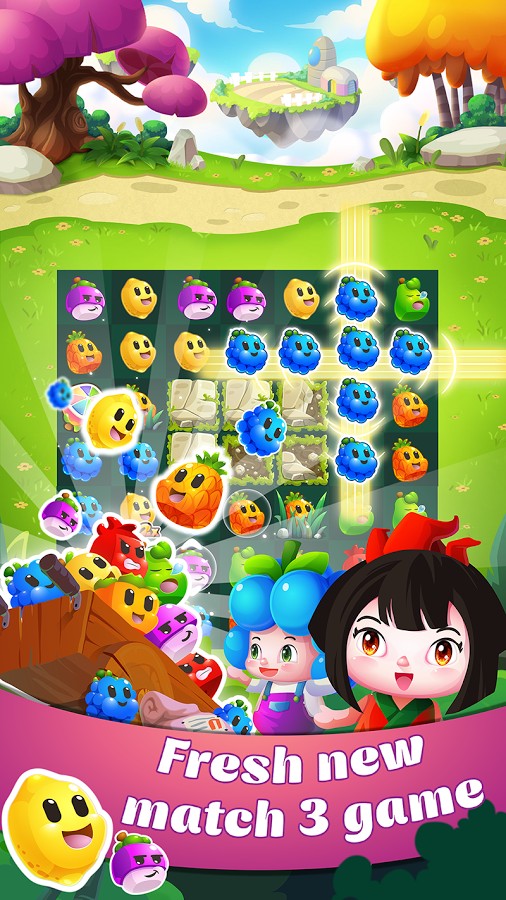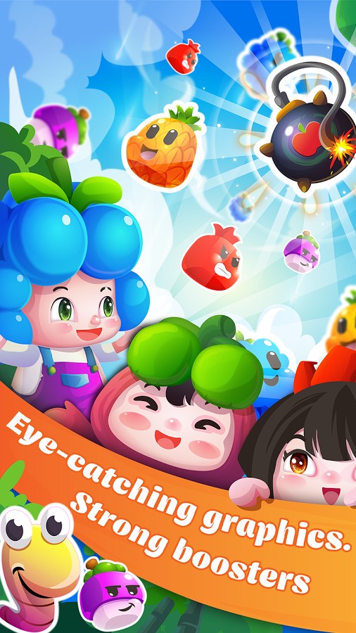 Fruit Cartoon: new fruit game with cute characters and challenging journey! Juice Babies live in Sky Farm in happiness with their friends. However, the worm attacks the farm, arrest Juice Babies and steal fruits. You need to protect the homeland, rescue your buddies, and fight against the enemy. This is a revolution of match 3 game with creative missions, fantastic adventure, and surely bring new experiences to fruit game fans! Let's go to the farmland, meet cute friends to start the interesting adventure!
