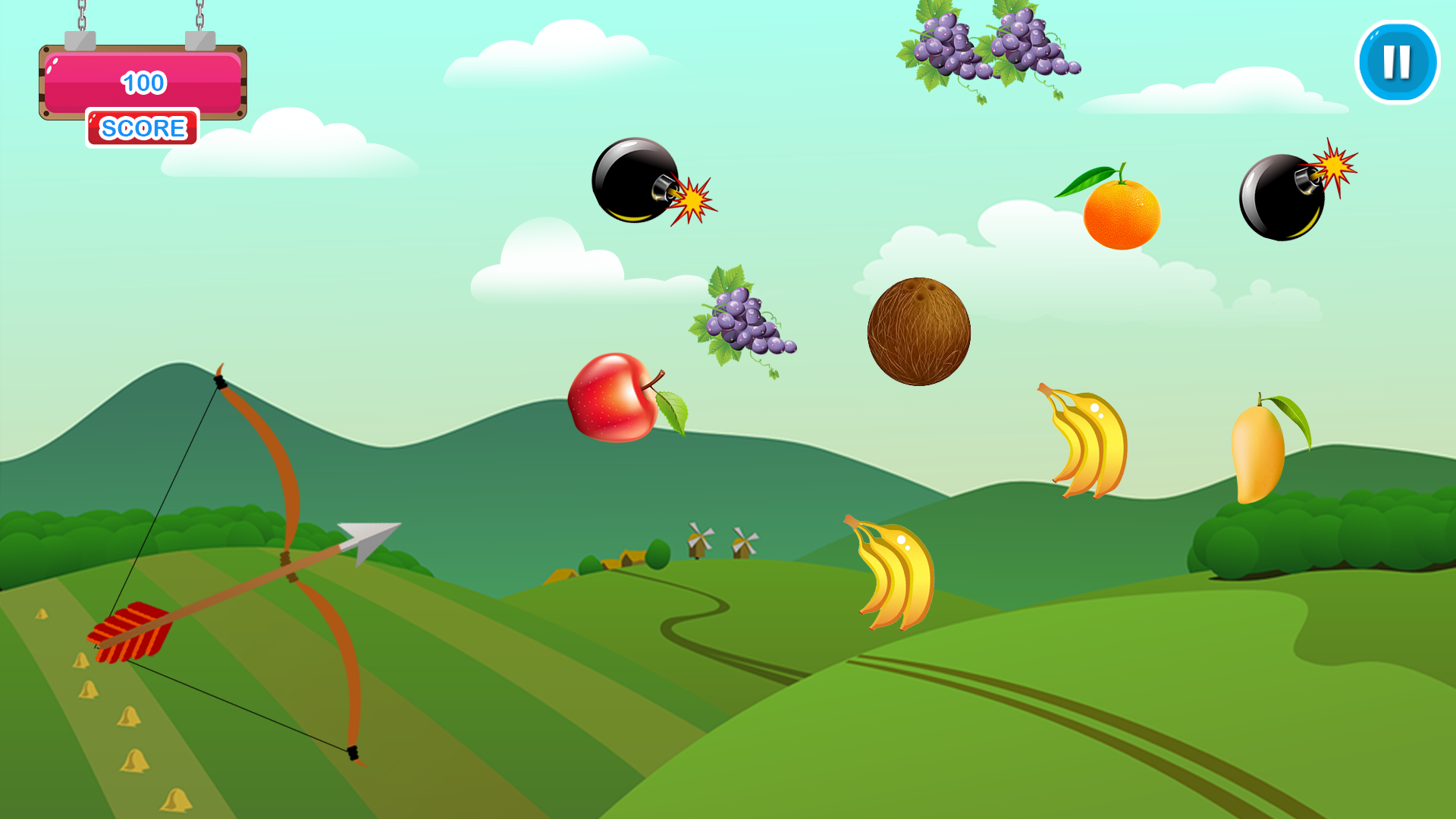 Swipe to shoot arrows and avoid bombs come between arrow and fruits.