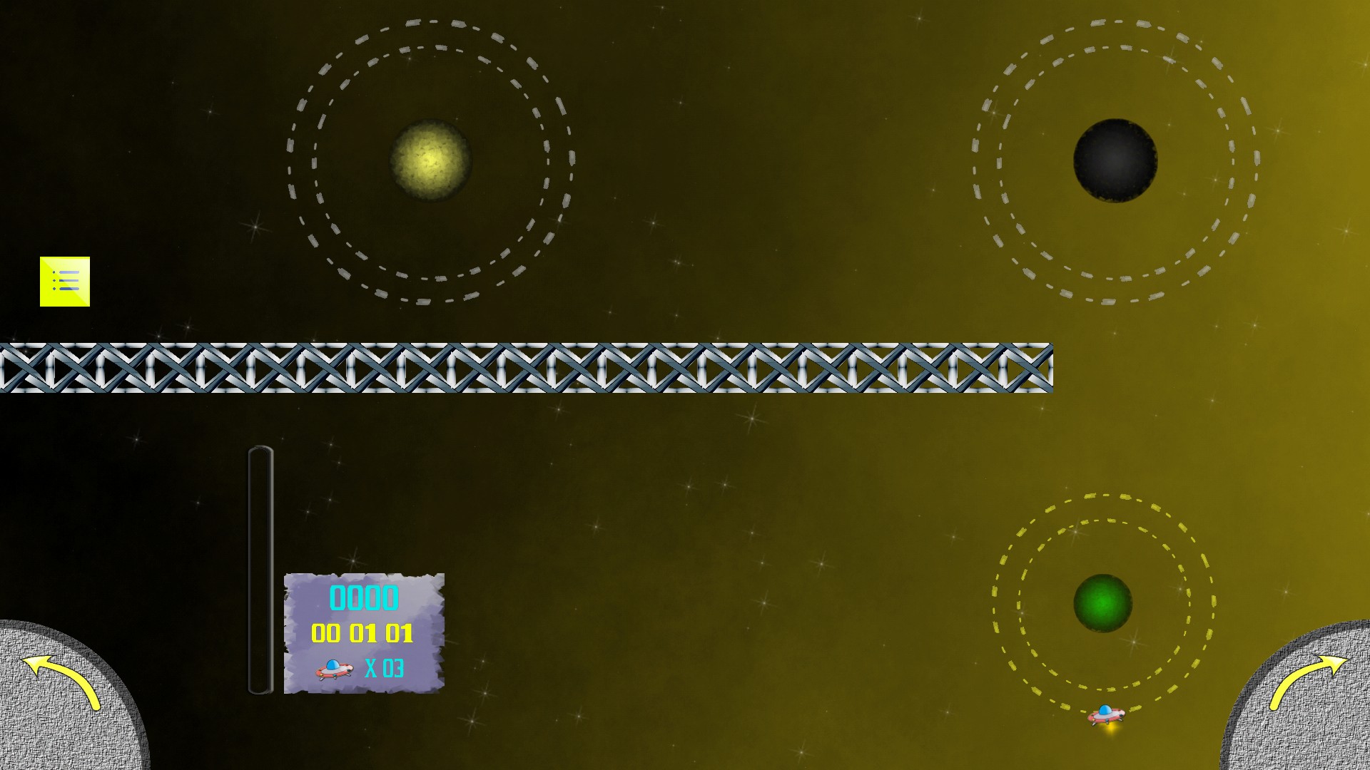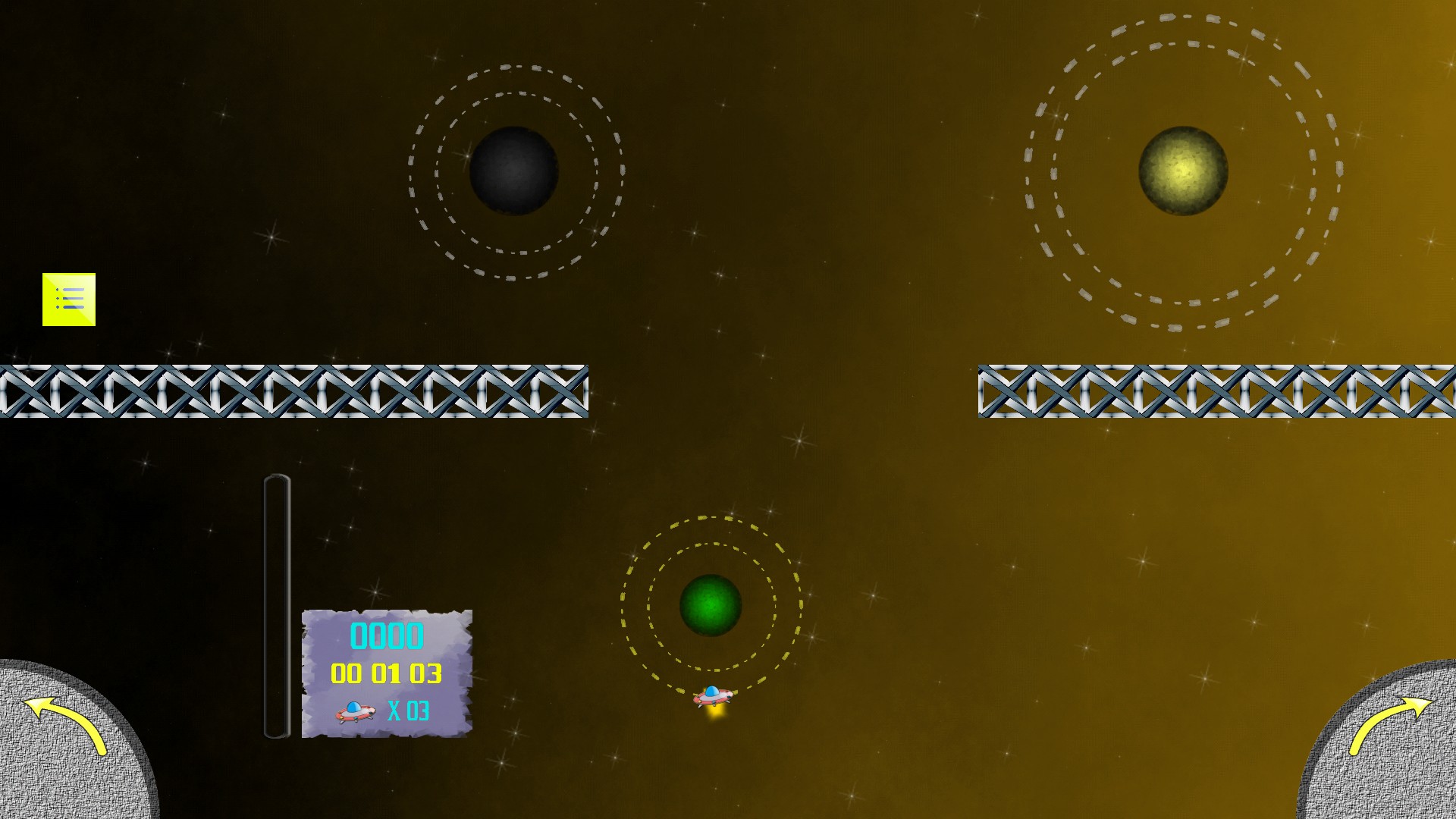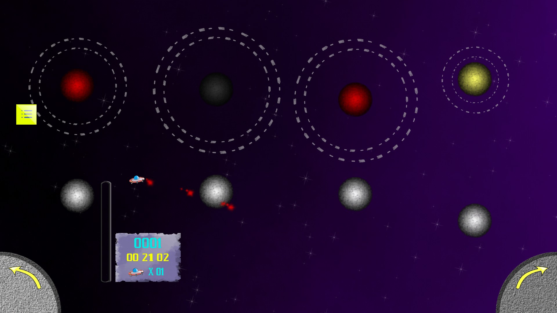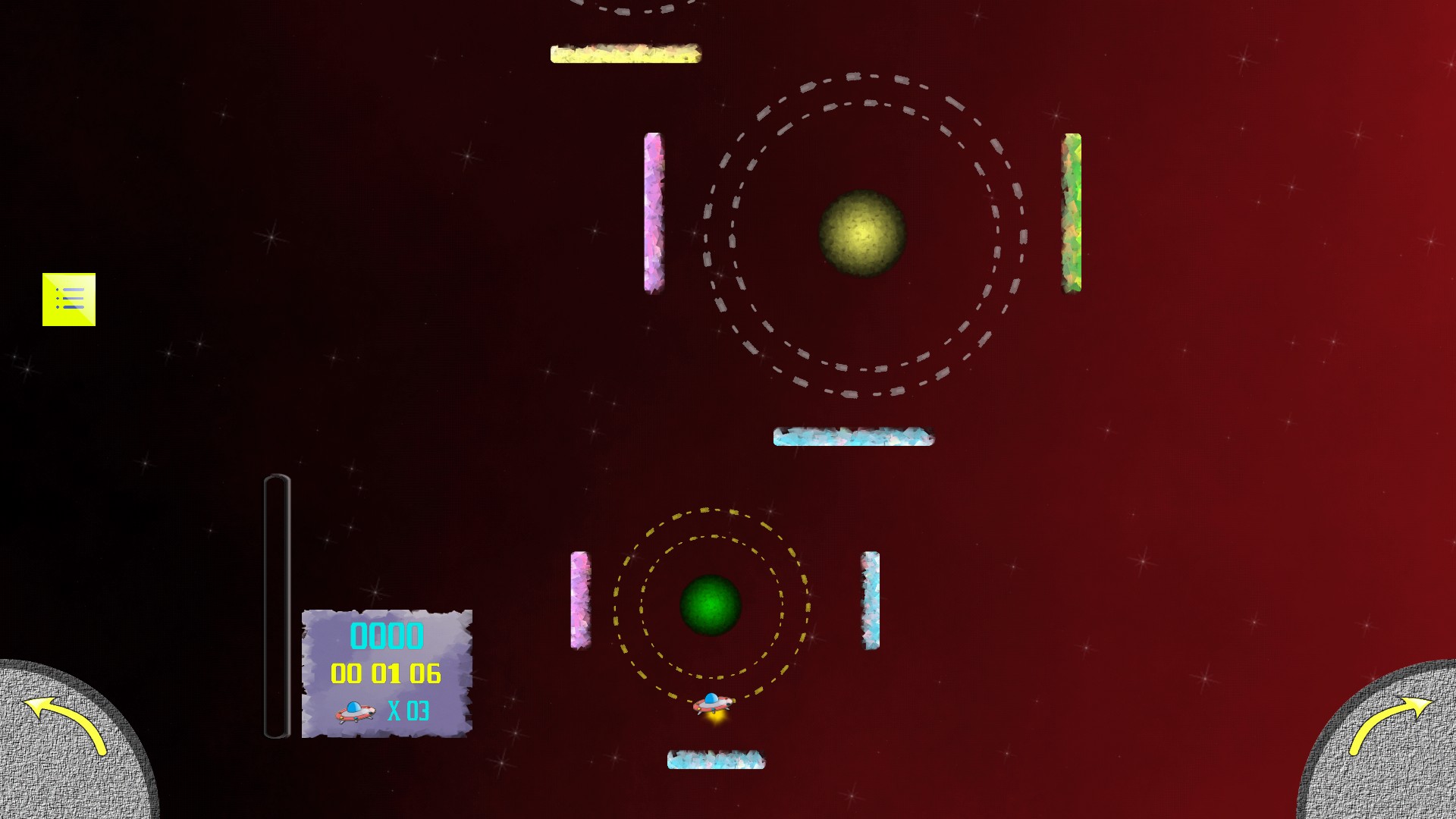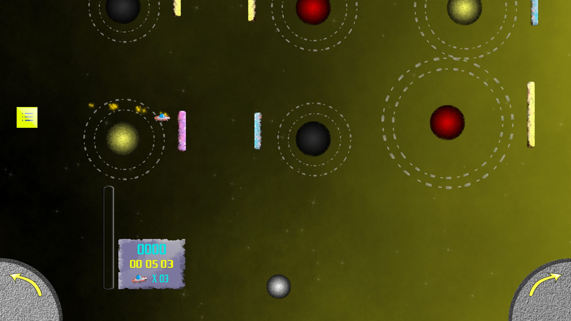 The game has 40 levels + an endless mode. Once you unlock the 40 levels the endless mode gets unlocked. As the game progresses, the number of planets decrease and more and more obstacles turn up. The more you practice the better your skills get and the faster you can complete the levels. As you complete the levels the background color changes from Violet to Indigo to blue to green to yellow to orange to red.
