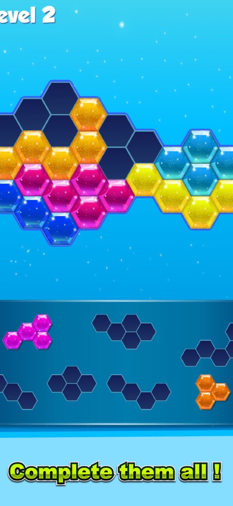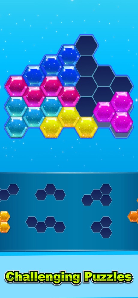 Get ready to dive into an exciting new futuristic challenge with Glitter Blitz! A fully interactive puzzle solving game where you need to match the hex blocks into their rightful places.