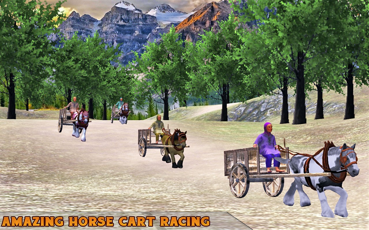 Experience a new simulation of racing adventure with a new challenge of racing fun. Now win a battle of extreme race by riding a horse and be the participant of Go cart horse racing. Horse racing or riding a horse is a real fun and adventure game but if you have to explore a jungle and extreme mountains with go carting by riding a horse it can brings a real racing fun for you. So play this free game today and sim your experience of real horse racing with go cart horse racing. Go cart horse racing has a real physics of go carting and extreme beautiful environment for horse racing. So show your classical riding skills and ride your horse like a real experienced rider and win a race with go carting fun. Go cart horse racing is an adventurous game for car racing lovers. Go cart sim your driving experience with a real tuned physics of your buggy and you'll get a real simulating experience of car driving. So download this free racing and simulation game today and get an amazing experience of real racing. Go cart horse racing has a multiple environment to drive your buggy for go cart horse racing. Ride a horse in a jungle and win a real challenge of horse riding or drive a buggy in hilly areas and compete all your opponents with a real racing fever. Select your horse cart and ride your desire horse to win a real battle of horse racing and show your expert riding skills. Enjoy a lovely graphics of mountain and jungle and drive your buggy smoothly with a smooth control of real go carting.