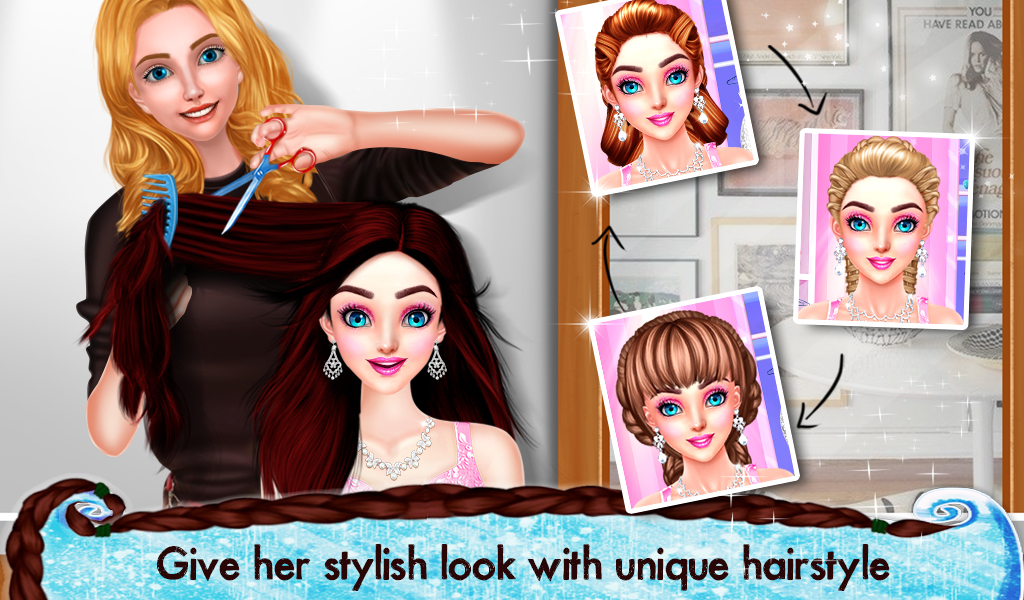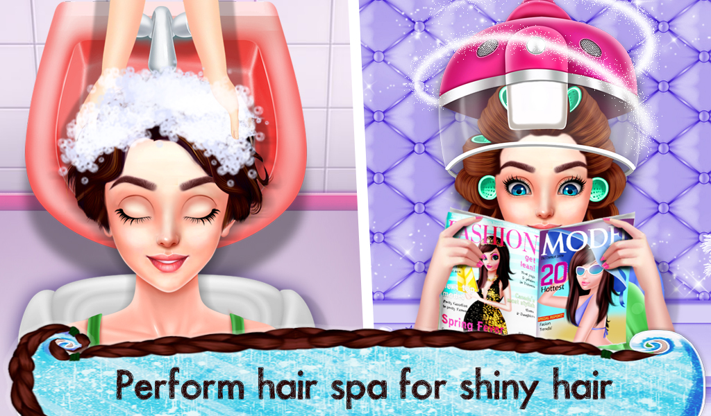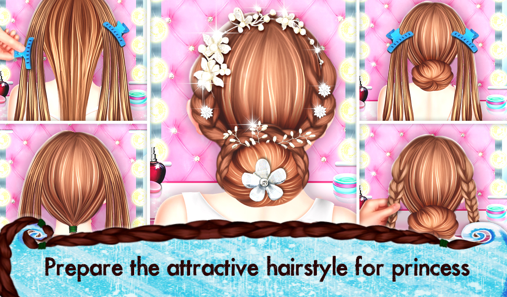 Today is a special day for our princess and she is worried about her makeover, she definitely needs your help to look fabulous. Become a hair stylist in this Gorgeous Wedding Bride Hair Do Design Spa Salon game and perform amazing hair salon activities for her. First of all, give her special hair treatment in this girls salon game with a moisturizing shampoo, conditioner & hair masks, use a blower for dry the hair and make her hair shine like a royal girl. Here in this hair spa girls makeover game we added tons of braided hairstyles for you, just choose your favourite hairstyle to make it with proper guidance. Don't forget to decorate her hair using different colors and tons of hair decoration accessories in a magical hair salon. Then it's time to check your dress up sense and help princess to select gorgeous dresses for her special day. With this princess fashion hair salon game, you can get lots ideas about Bride Hairstyles. At the end, select your favourite and take amazing photos with different hairstyle designs and save it to your phone gallery and also share it on social media sites like Facebook, WhatsApp, Twitter, Snapchat etc.,