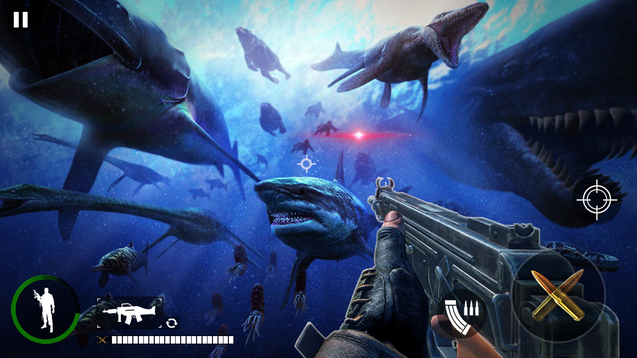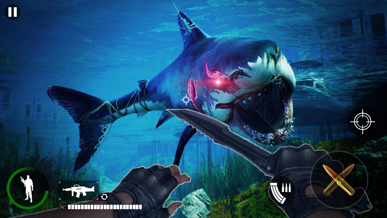 Realistic 3D Grand Ocean full of deadly sharks to shoot and survive