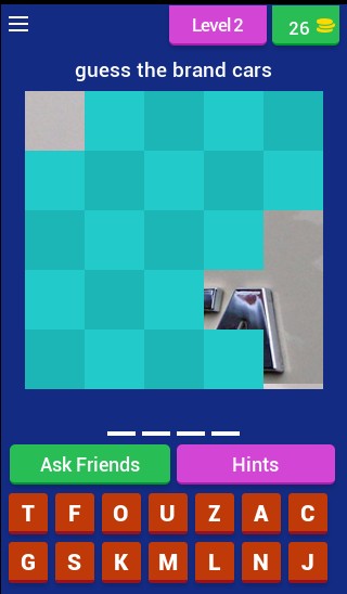 Open a photo and several fragments guess the car brands. You can use hints, help from friends or game coins for more hints. Good luck!