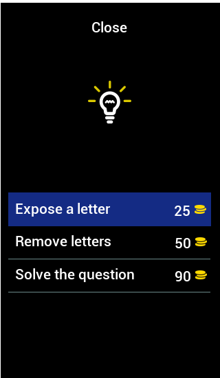 Your brain overheating? In Guess The Movie Blur, we offer several ways to help the player to get back on track such as show one correct letter, remove an incorrect letter, or reveal the right answer altogether!