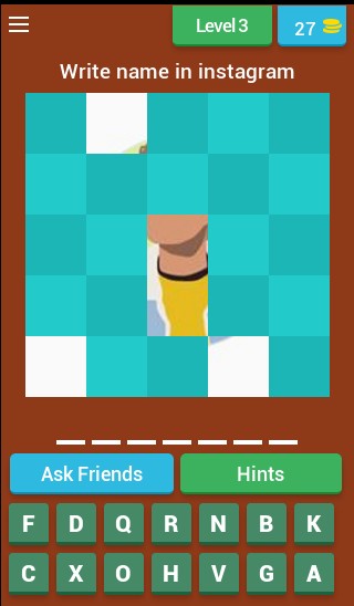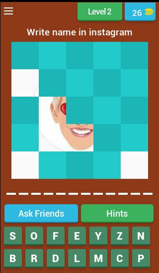 You need to open a few tiles and a fragment of the avatar page star in Instagram, try to guess the nickname of the stars! That is the name that is listed on the page the stars. (example: page name is Jennifer Lopez on Instagram - "jlo", the correct answer is "jlo").