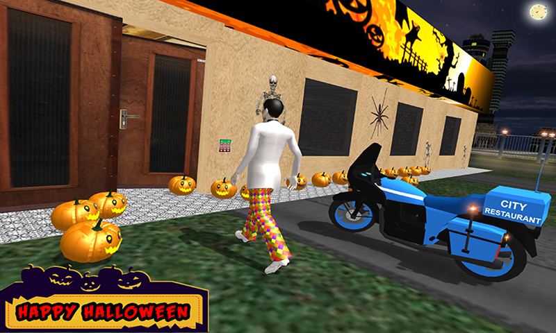 Enjoy Halloween night with your friends in party restaurant and deliver food in the city with the help of your bike. Serve the food to the customer and get best employee award from the restaurant. Help the kitchen chief to wash the dirty dishes and clean the restaurant before the customers arrive. Show your driving skills and deliver the fast food on time in the grand night city.