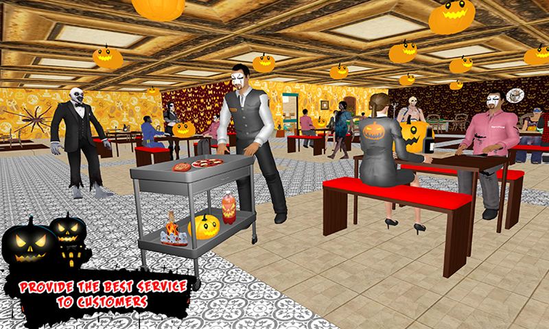 Halloween Party Restaurant Waiter is entertaining game for all Halloween party game lovers. Open the city restaurant and switch on the light with the help of your freaky player. Pick the brush the clean your restaurant and provide fresh hotel environment. Start your dark night with haunted party and serve the Halloween food the customer in the strange night.